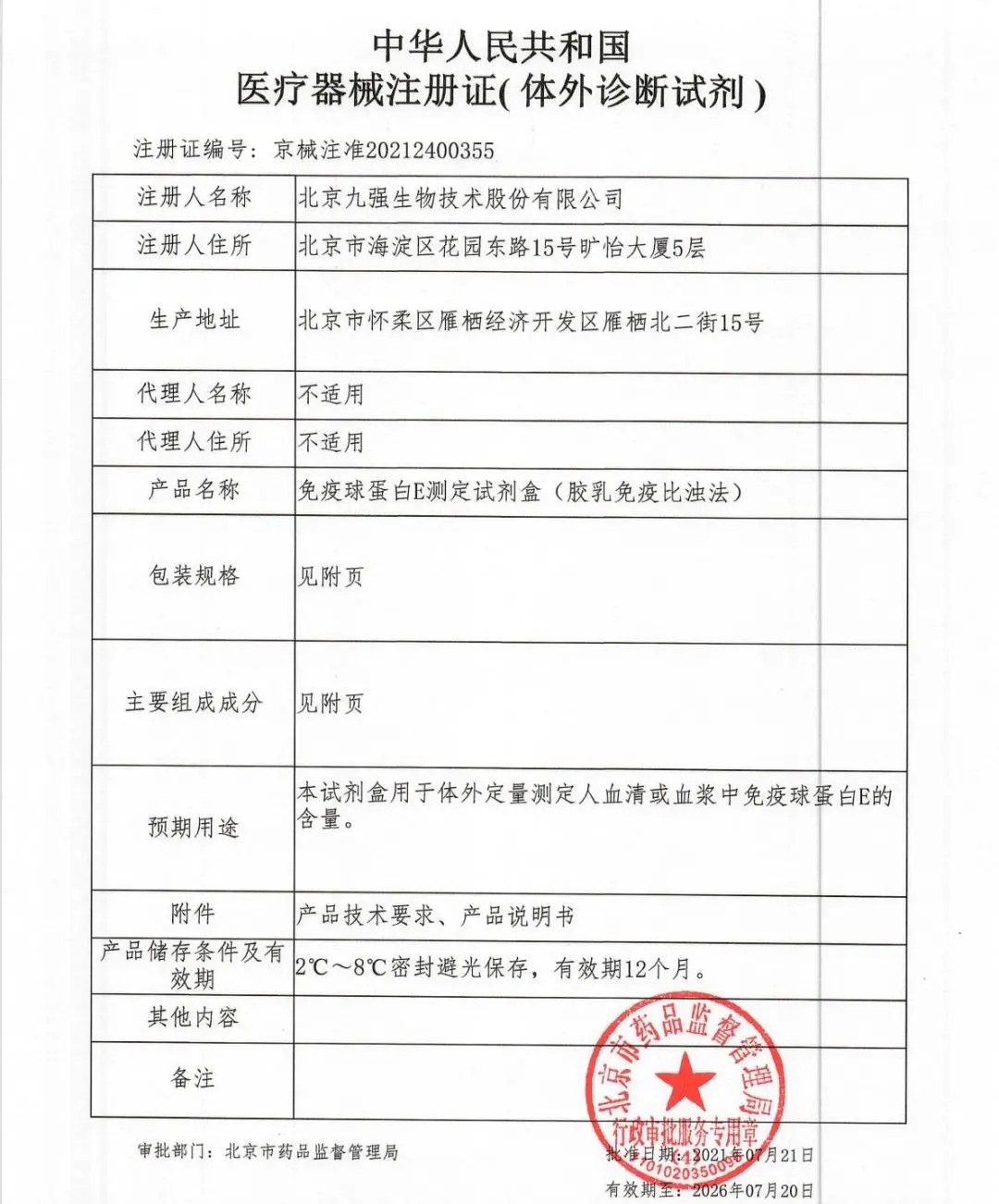 尊龙官方平台生物顺遂取得国家药品监视管理局揭晓的免疫球卵白E测定试剂盒(胶乳免疫比浊法)的《医疗器械注册证》。